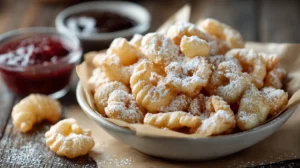 Warm, sugar-dusted puffs with that classic funnel-cake chew, bite-size, batch-friendly, and perfect for party trays.