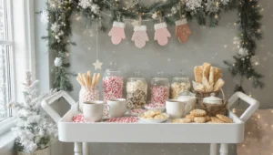 Build a cozy “Baby Flurry” cocoa station with pastel toppings and cute cut-outs, guests feel pampered, you stay stress-free.