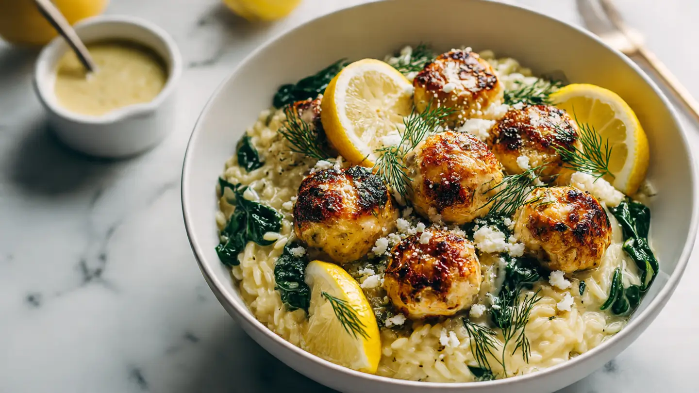 Baked Lemon Chicken Meatballs & Creamy Orzo