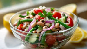 - Fresh Black Eyed Peas Recipe: simmer soaked peas in salted water 20–30 min until just tender; cool before tossing.