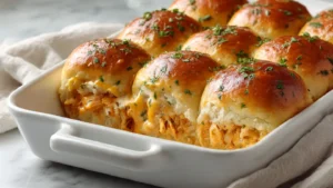 Creamy, melty buffalo chicken sliders baked on soft rolls — ready in about 30 minutes. Woman-friendly, weeknight-easy, and perfect for football food, parties, or fast dinners.