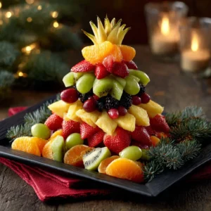 The Christmas Fruit Tray is an easy and healthy addition to your holiday spread. It allows you to showcase seasonal fruits in a fun and creative way. This recipe is perfect for both children and adults, making it a great choice for gatherings. You can customize it with your favorite fruits, and it adds a splash of color and freshness to your table. It’s also a refreshing option alongside heavier dishes, helping to balance the holiday feast.