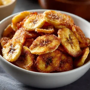 These banana chips are best enjoyed warm and crispy. You can serve them as a snack on their own, or pair them with yogurt for a delightful treat. They also make a great topping for oatmeal or a parfait, adding a sweet and crunchy layer. Feel free to get creative with your serving ideas!