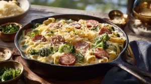 Smoky kielbasa, crisp-tender broccoli, and tender pasta in a silky, cheesy cream sauce—easy enough for tonight, cozy enough for seconds.