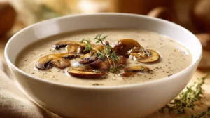 A silky, savory mushroom soup with Olive-Garden-style flavor — easy 30-minute comfort made with cremini and portabella mushrooms, finished creamy without boiling.