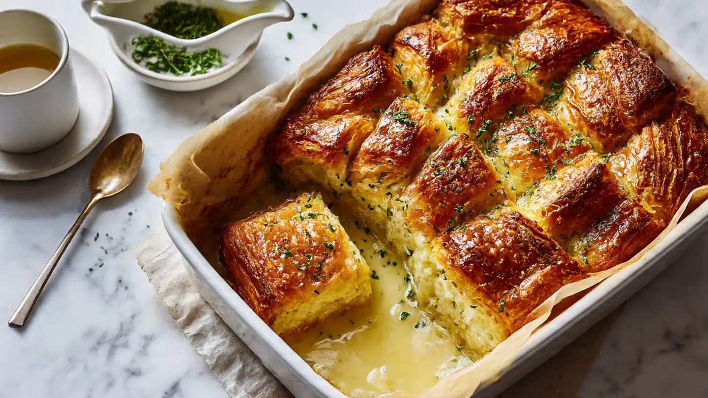 Flaky, buttery croissants meet classic stuffing flavors in this cozy, savory bake. Crisp edges, a tender custardy center, and a rich butter-herb aroma make it an easy, make-ahead favorite for holidays and gatherings.