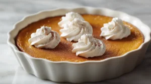 - No-Bake Pumpkin Pie Recipe (cheesecake-style): Whisk 1 cup pumpkin, 8 oz light cream cheese, ⅓ cup sugar or substitute, 1 tsp spice, 1 tsp vanilla, 1 cup whipped topping; chill in a springform. (Technically not custard, but a crustless no-bake option.)