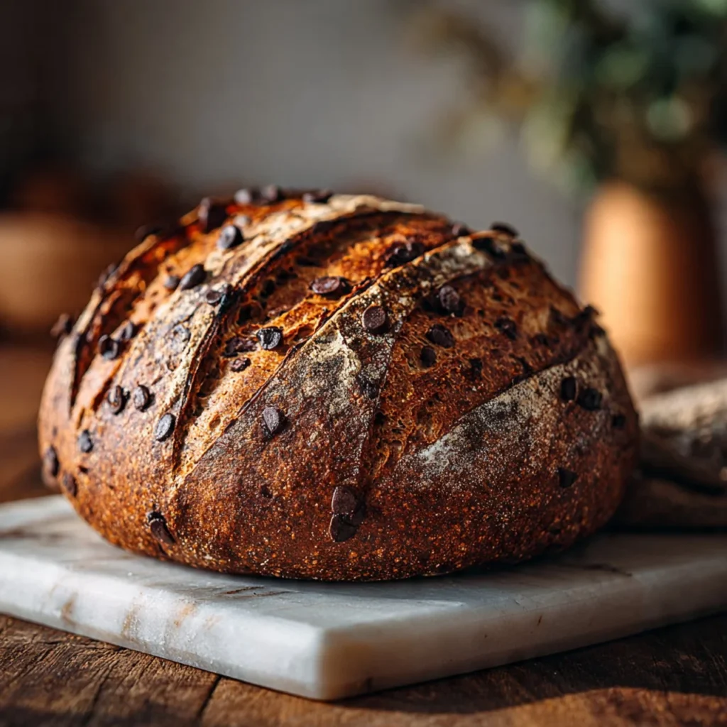 This double chocolate sourdough bread combines the tangy depth of sourdough with cocoa and chocolate chips, perfect for breakfast, snacks, or dessert.