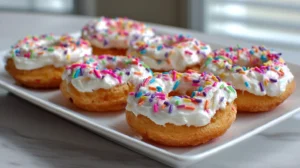 A fresh apple “donut” topped with creamy yogurt and crunchy sprinkles. Ready in minutes, fun to decorate, and perfect for after-school or summer snack plates.