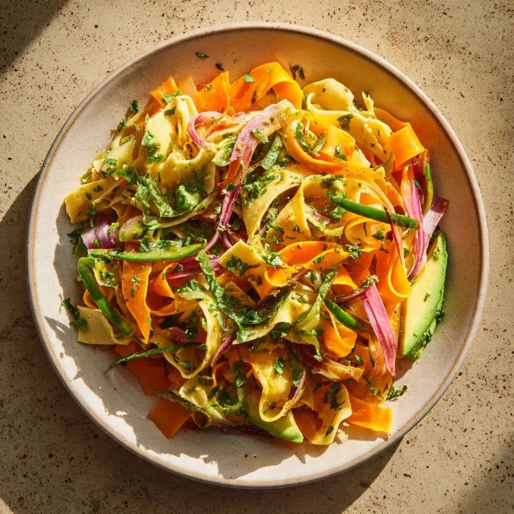 If you have leftovers, keep the salad in an airtight container in the refrigerator. However, the salad is best eaten fresh, as the carrot ribbons can become soggy over time. If you’re planning to make it in advance, consider storing the dressing separately and mixing it in just before serving.