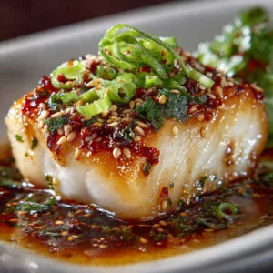Serve this dish with a side of steamed rice or sautéed vegetables for a balanced meal. The glaze enhances the flavor of the cod, and the green onions add a fresh touch. This dish pairs well with a crisp salad or even a warm bowl of miso soup for an enjoyable dining experience.