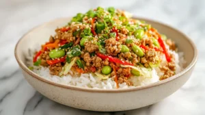 High-protein, extra-veg, weeknight skillet with edamame and glossy ginger-garlic sauce, serve over rice or keep it low-carb.