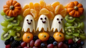 • Ghosts: Banana halves with 2 chocolate eyes and a tiny mouth.