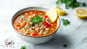 - High-protein + lean: Ground turkey and optional white beans bring satisfying protein for Stuffed Pepper Soup Healthy.