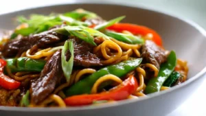 Tender stir-fried beef and veggies tossed with glossy hoisin-ginger sauce and bouncy noodles—fast, flexible, and restaurant-style flavor in 20 minutes.