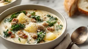 A cozy bowl with browned Italian sausage, tender potatoes, sweet onions, and a splash of cream, finished with kale and Parmesan for a satisfying, fall-ready dinner.
