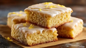 - Glaze: Stir powdered sugar with lemon juice to a pourable glaze. Spread over warm bars; sprinkle zest.