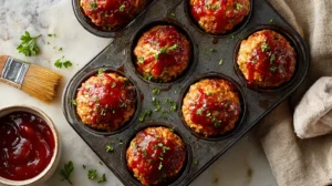 - Glaze: Stir ⅓ cup ketchup + 1 Tbsp brown sugar + ½ tsp Dijon + ½ tsp cider vinegar. Spoon over tops.