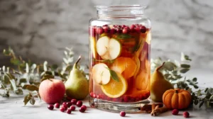 - Add sliced apple, pear, and orange. Cover and refrigerate 1–24 hours to infuse flavors.