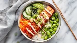 - Japanese Salmon Bowl: Add pickled ginger, swap sriracha-mayo for ponzu; sprinkle furikake.