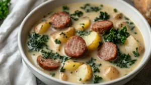 A cozy, chowder-style sausage and potato soup that’s hearty, creamy, and flexible — use Italian, smoked, kielbasa, or chicken sausage. Ready in about 45 minutes on the stovetop or all day in the slow cooker.