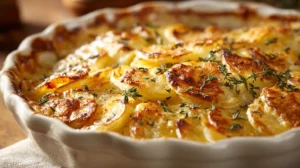 - Season in layers: A pinch of salt/pepper on each potato layer = brighter flavor.