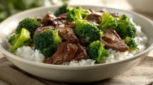 Thin-sliced beef cooks until tender in a savory garlic soy sauce, then gets tossed with bright broccoli for a takeout-style bowl that is budget friendly and weeknight easy.