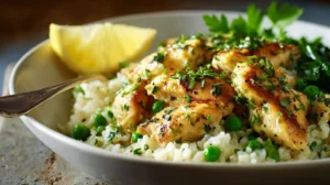 Lemon-garlic chicken melts into fluffy herbed rice—bright, comforting, and weeknight-easy with zero babysitting.