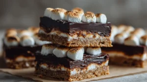 A buttery graham crust, glossy chocolate, and pillowy marshmallows stack into neat bars that taste like the best fireside bite—no fire pit required.