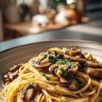 A delicious and easy spaghetti dish featuring sautéed mushrooms, garlic, and a buttery sauce, perfect for weeknight dinners or cozy gatherings.