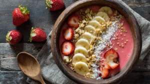 - optional toppings: sliced strawberries, banana slices, blueberries, granola, shredded coconut, almonds, walnuts, chia seeds, sunflower seeds