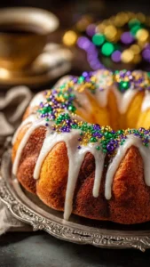 A delightful treat traditionally enjoyed during Mardi Gras celebrations, featuring sweet dough and colorful icing, perfect for gatherings and special occasions.