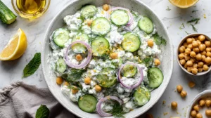 Cool, garlicky, and fresh, this tzatziki-inspired cucumber salad turns simple ingredients into a crisp, creamy bowl you’ll actually crave at lunchtime.
